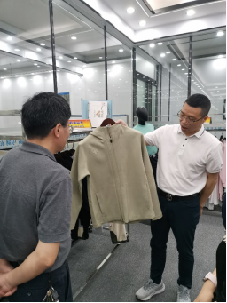 會後,劉總向易兵校長一行展示了企業各種各樣的服裝産品,并詳細介紹了一些服裝的特色、功能、代工貼牌服裝的價格,并通過講解貼牌産品的附加值來說明服裝品牌的重要性。然後,劉總引領易兵校長一行參觀了印染車間、實驗室、調度控制室、智能化車縫車間和熨燙車間。其間,雙方對企業的生産技術、設備、産品、管理等方面做了進一步的交流,共同希望校企雙方能夠深入開展産學研合作,幫助企業解決難題。